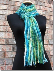 Our bracelets and felt flower pins make great additions to our scarves!! Check out the coordinating Skinny Blue & Green Scrappy Scarf in Under the Sea here -- http://www.etsy.com/listing/87946040/skinny-blue-and-green-scrappy-scarf.